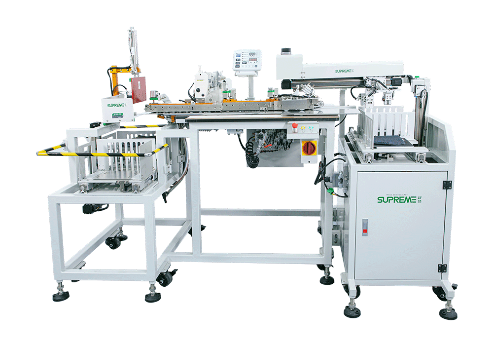 Máy may miệng túi dùng để may miệng túi sau của quần Jean. Với hai bộ tiếp phụ liệu tự động với sức chứa 250 mẫu mỗi bộ cùng với chức năng phát hiện và thông báo khi hết phụ liệu. Một người có thể vận hành hai máy cùng lúc với 2 giai đoạn luân phiên là thu sản phẩm và tiếp phụ liệu cho mỗi máy.